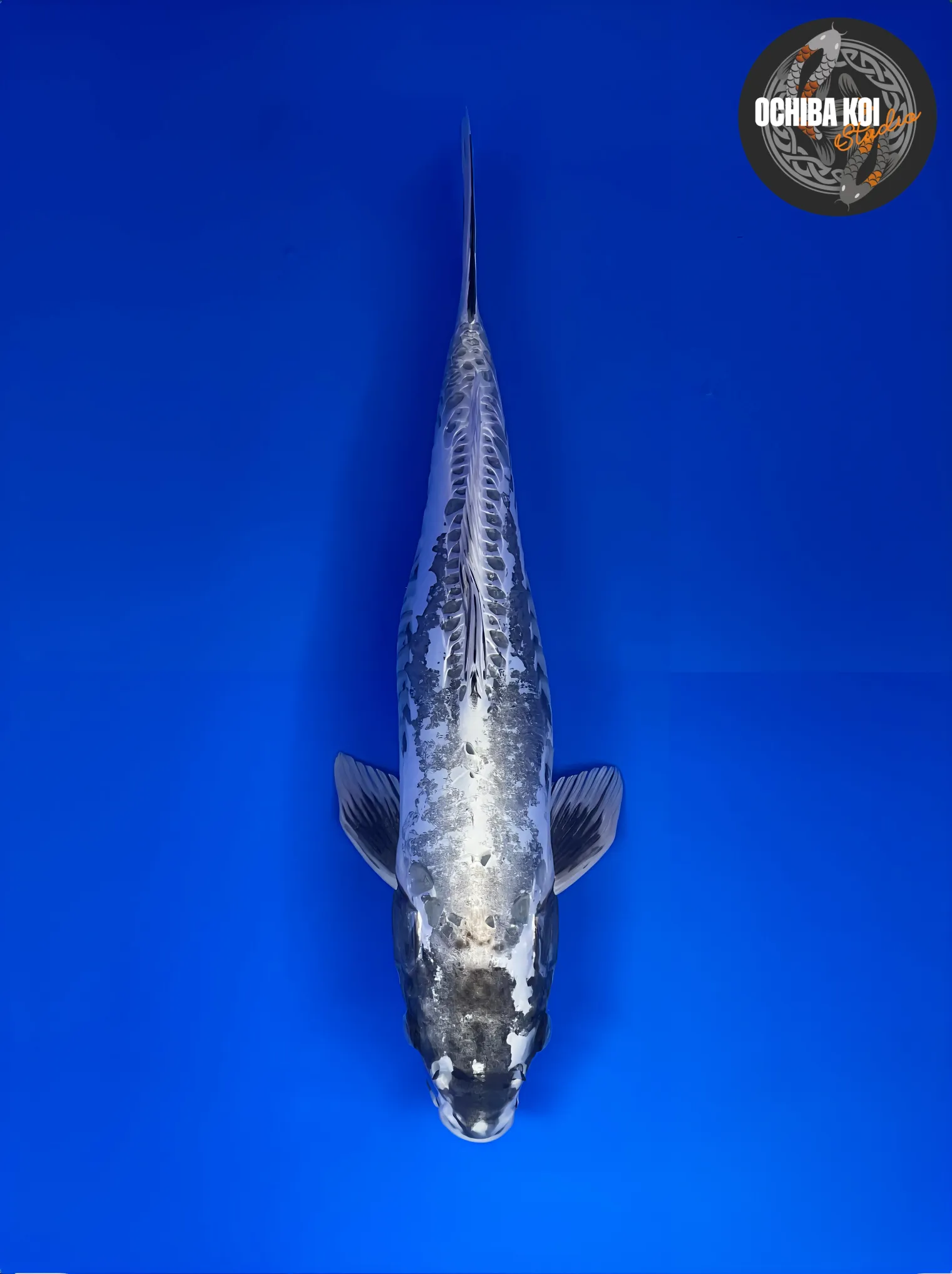 Bred by Aoki Koi Farm, a specialist in metallic and Doitsu koi varieties, this Doitsu Nezu Ogon stands out for its uniform metallic luster and smooth scaleless skin. The subtle gray tone — known as Nezu — gives this koi a unique understated elegance, while the streamlined body highlights its health and vitality.