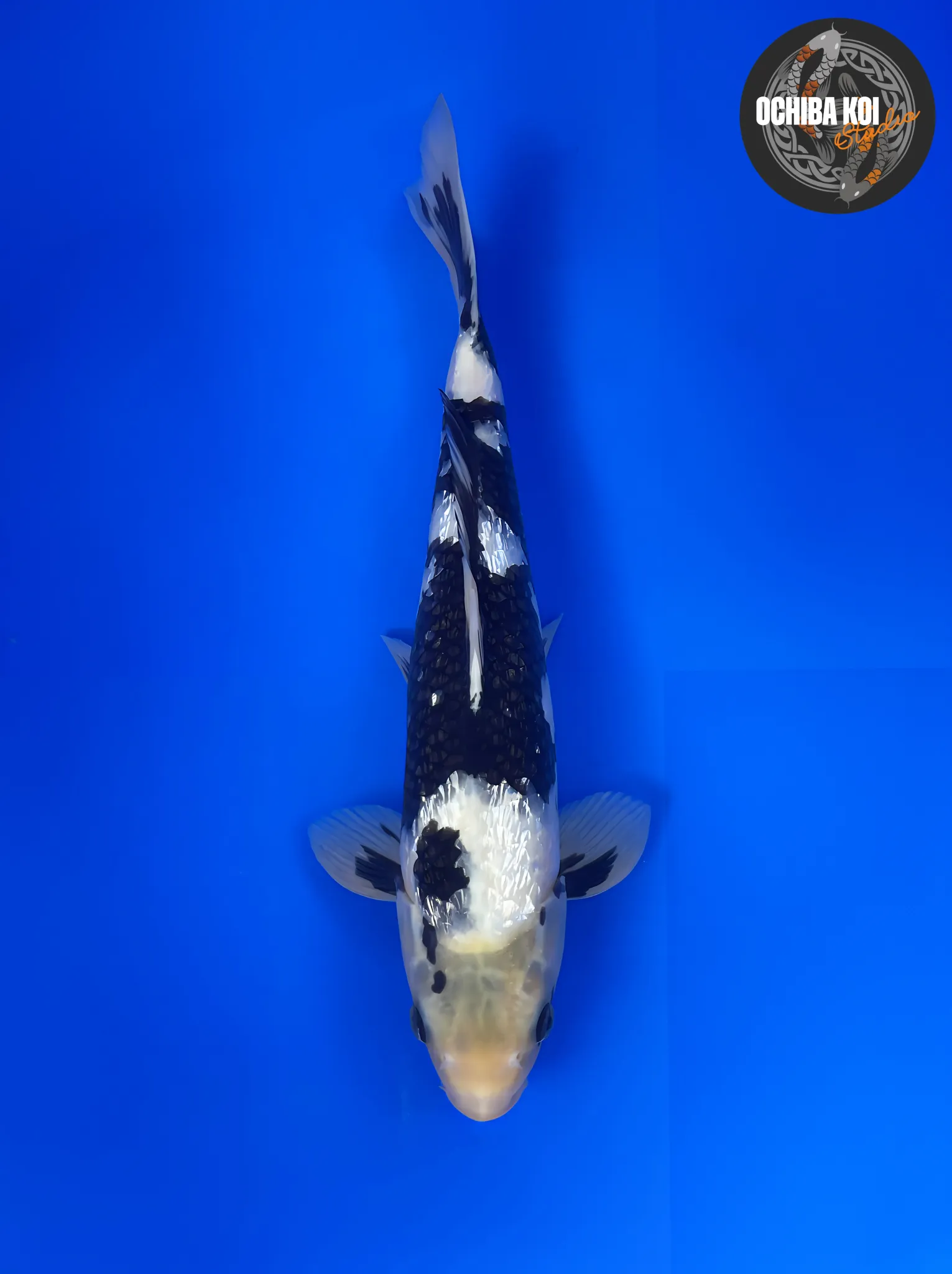 Bred by Omosako Koi Farm, the undisputed master of the Shiro Utsuri variety, this Ginrin Shiro Utsuri stands out for its crisp contrast, strong body shape, and dazzling ginrin that catches light from every angle. The interplay between deep sumi and pure white skin creates a classic yet dynamic appearance, while the ginrin scales add a layer of brilliance rarely matched in this variety.