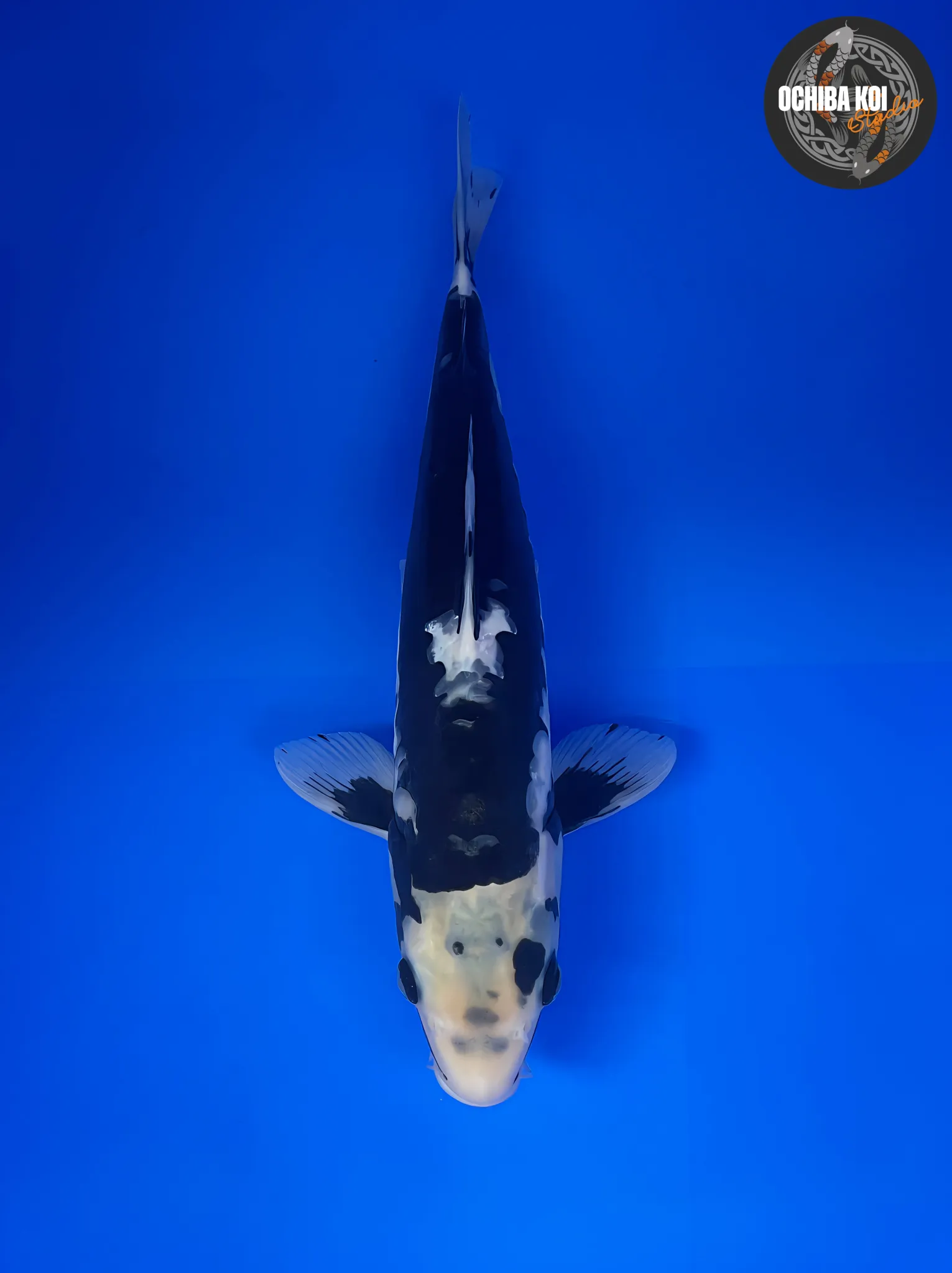 Bred by Aoki Koi Farm, renowned for exceptional metallic and dynamic patterned koi, this Shiro Kumonryu combines a clean white base with bold, lacquer-black sumi markings that shift and transform over time. As the koi matures, its pattern can develop unpredictably—one of the most captivating features of this variety.